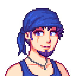 This is Tyson, a Sky Pirate from Aeropa in the Jak and Daxter universe. His hair and eye colour were permanently turned dark purple due to dark eco experiments by Duke Skyheed and eventually moved to the Stardew Valley universe after defeating Skyheed alongside Jak and Daxter. Tyson lives in a log cabin in the Cindersap Forest with Elliot Gleave aka Example and Shane